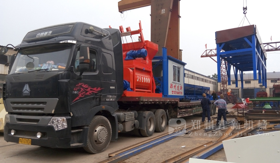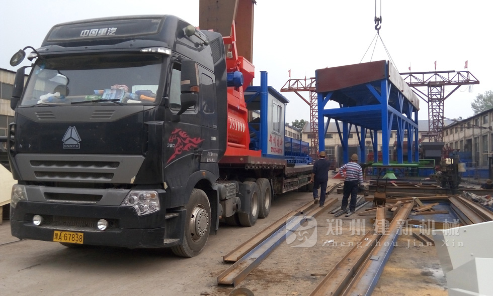 安徽用戶6月下旬的HZS50攪拌站訂單,7月14日發(fā)貨,圖為建新廠家裝車過(guò)程。