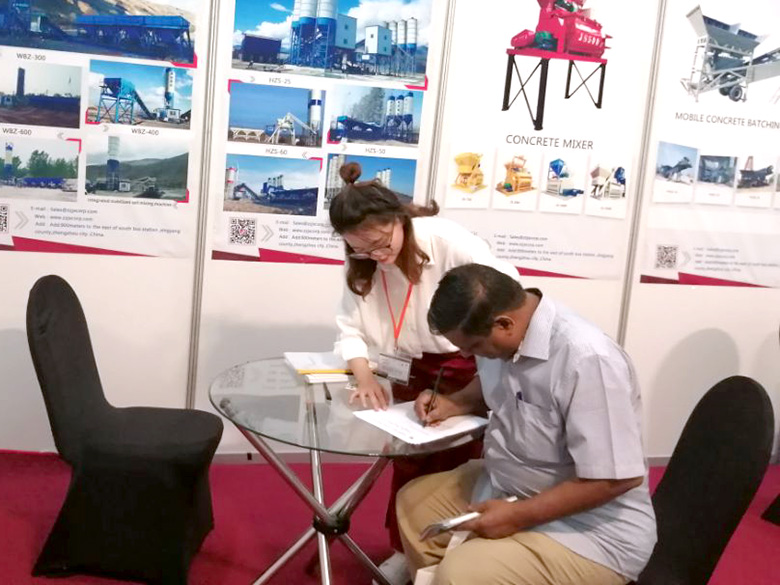 展會(huì)上,建新機(jī)械研發(fā)的JS混凝土攪拌機(jī)、YHZS移動(dòng)式攪拌站、MPC立軸行星式攪拌機(jī)、HZS系列混凝土攪拌站、WBC系列穩(wěn)定土拌合站等產(chǎn)品吸引了絡(luò)繹不絕的觀展者駐足洽談。接待人員不失時(shí)機(jī)地向來觀展的客戶介紹建新機(jī)械的技術(shù)優(yōu)勢、產(chǎn)品特點(diǎn)、售后服務(wù)及銷售代理政策,其熱情的講解受到了廣大斯里蘭卡客戶和當(dāng)?shù)毓こ虣C(jī)械人士的關(guān)注,部分客戶當(dāng)場展開了詳細(xì)的商談。