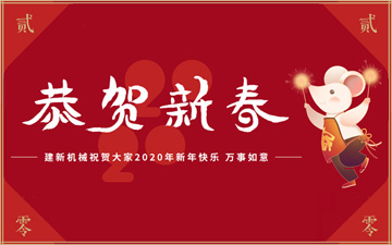 • 我們告別成績(jī)斐然的2019,迎來了充滿希望的2020,值此新春到來之際,鄭州市建新機(jī)械制造有限公司向一直關(guān)心陪伴建新機(jī)械成長(zhǎng)的新老客戶致以新年的問候和祝福!祝大家在新的一年里身體健康、萬事如意、心想事...